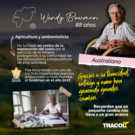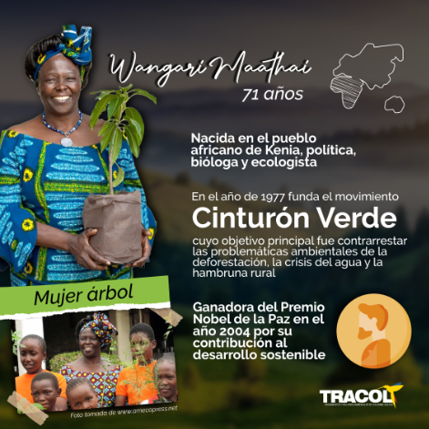 En este mes dedicado a exaltar la fortaleza, tenacidad y espíritu indomable de las mujeres, desde TRACOL S.A.S. queremos rendir homenaje a 7 grandes mujeres que han destacado por su lucha incansable por el medio ambiente en sus regiones. Estas mujeres han cambiado el mundo con su entrega y amor por el entorno, inspirando a otros a seguir su ejemplo.