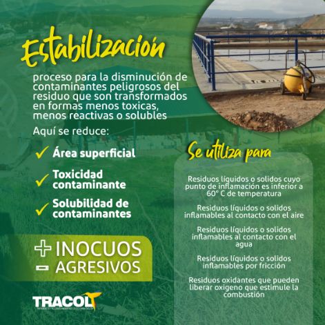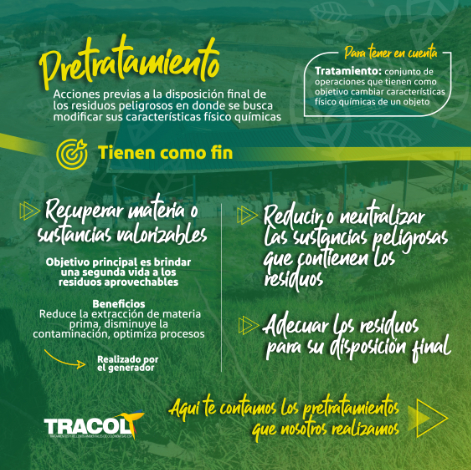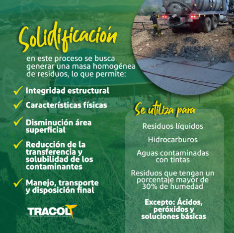 ¿Sabías que en TRACOL S.A.S. llevamos a cabo diferentes tipos de pretratamientos para brindar una gestión adecuada a tus residuos peligrosos? Entre ellos se encuentran la solidificación, la neutralización y la estabilización. En nuestro sitio web te explicamos el propósito de cada uno de estos procesos y para qué tipo de residuo se utiliza cada uno.