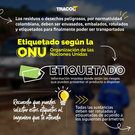 En Colombia y en el resto del mundo, según la normativa de transporte, ambiente y desarrollo sostenible, los residuos peligrosos deben ser envasados, embalados, rotulados y etiquetados adecuadamente antes de ser transportados para su disposición final. En Tracol S.A.S., te proporcionamos información sobre las diferentes especificaciones que debes tener en cuenta en el proceso de etiquetado y embalaje de estos residuos.